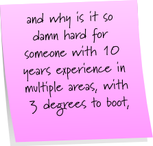 but really, seeing as how i am gainfully employed, i cannot bitch too much.  i have friends that are having the same problem finding employment, and they need it way more than i do.